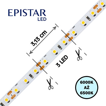 - LED pásek 96LED/m, 3528, IP65, 6000 - 6500 K, bílá, 12V, 20m