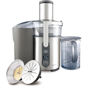 Odšťavňovač s titanovým ostřím, velmi tichým výkonným motorem s regulací a velikým plnícím otvorem, kterým je možno vkládat celé plody. Tento přístroj je absolutní špičkou mezi profesionálními odstředivými odšťavňovači se kterým si můžete kdykoliv udělat čerstvou šťávu nebo pyré.