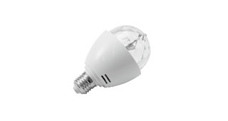 Dekorativní LED žárovka, která vytváří barevný kaleidoskopický efekt. Žárovka je osazena třemi 0,5W LED diodami (1x červená, 1x zelená a 1x modrá) a klasickou objímkou s paticí E27. Ideální do stolních lampiček i stropních světel. Jakmile se žárovka našroubuje do objímky, začne svítit a rotovat rychlostí 11 otáček za minutu kolem své osy a projektovat zářivé barevné paprsky. Vhodné pro efektové osvětlení barů v tanečních klubech a diskotékách, ale také pro domácí použití pro navození skvělé párty atmosféry.