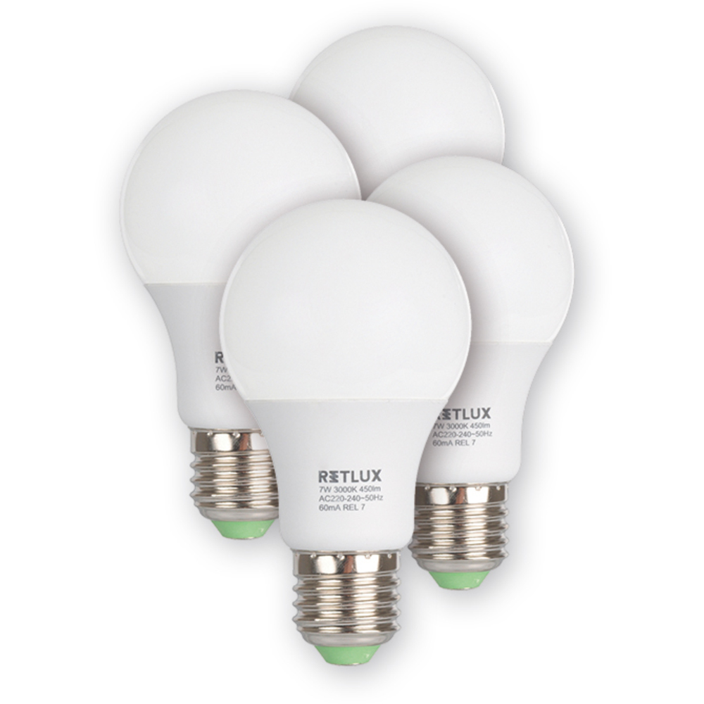 REL 17 LED A60 4x7W E27 RETLUXNa prodejně209 Kč/ ks173 Kč bez DPH