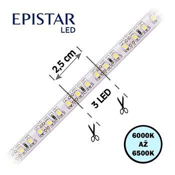 - LED pásek 120LED/m, 3528, IP20, 6000 - 6500 K, bílá, 12V, 8mm, 5m
