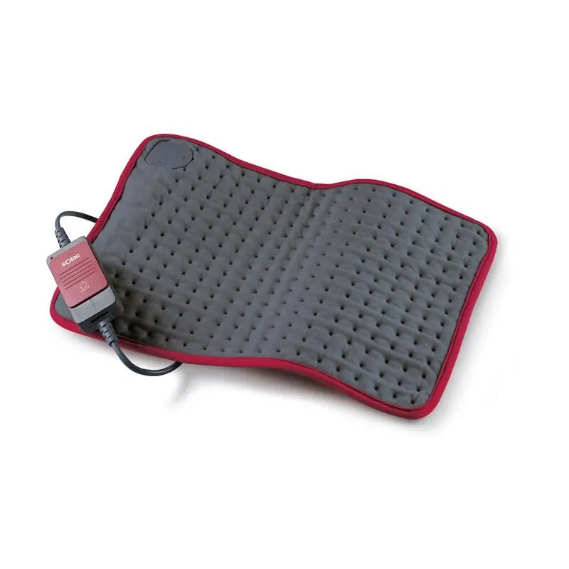 Univerzální vyhřívací dečka Solac se přizpůsobí každé části těla, je pružná a prodyšná. Poskytuje uvolnění a úlevu od bolesti. Textilní dečka s příkonem 100 W disponuje rozměrem 48 × 34 cm.